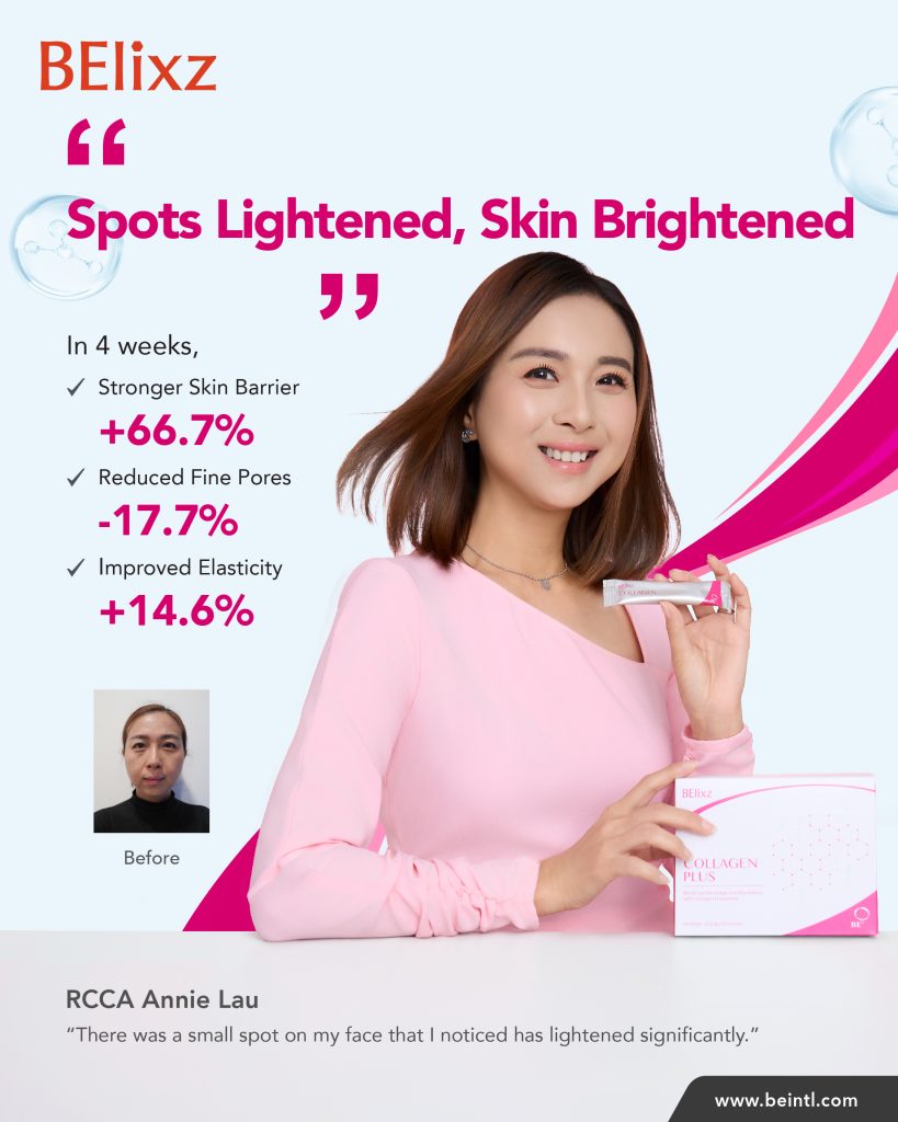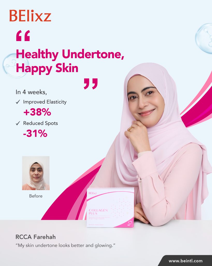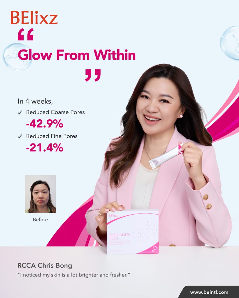 As it is formulated to replenish our skin from the inside out, BElixz COLLAGEN PLUS goes beyond ‘surface-level treatment’ with its combination of advanced collagen science and carefully selected ingredients, helping you to achieve a younger-looking, fresh, and healthy skin.