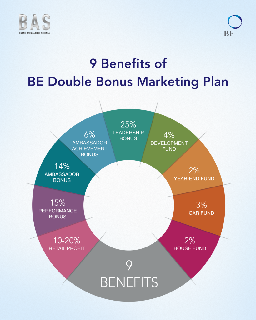 Our BE Double Bonus Marketing Plan is designed to reward your hustle at every single level: