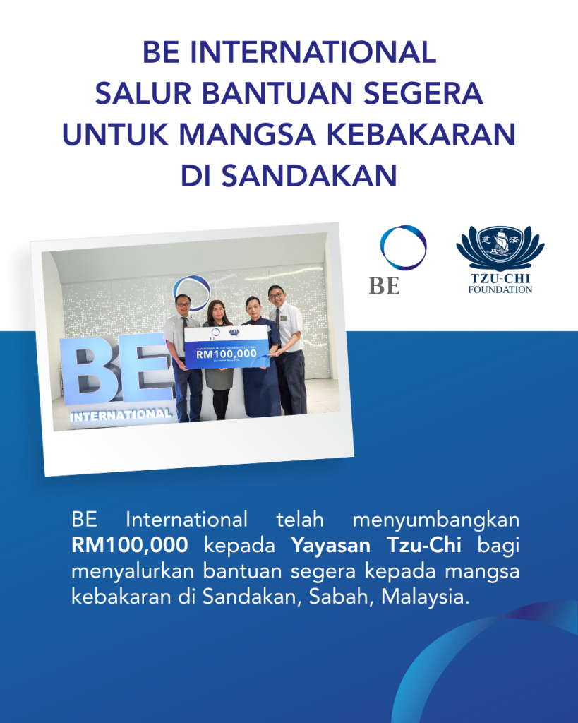 BE komited mengumumkan sumbangan sebanyak RM100,000 kepada Yayasan Tzu-Chi bagi menyokong usaha bantuan segera. Kami percaya bahawa menghulurkan bantuan kepada mereka yang memerlukan adalah tanggungjawab bersama semasa krisis, dengan harapan sumbangan ini dapat memberikan sedikit sebanyak kemudahan kepada mereka yang sedang menempuh waktu sukar.