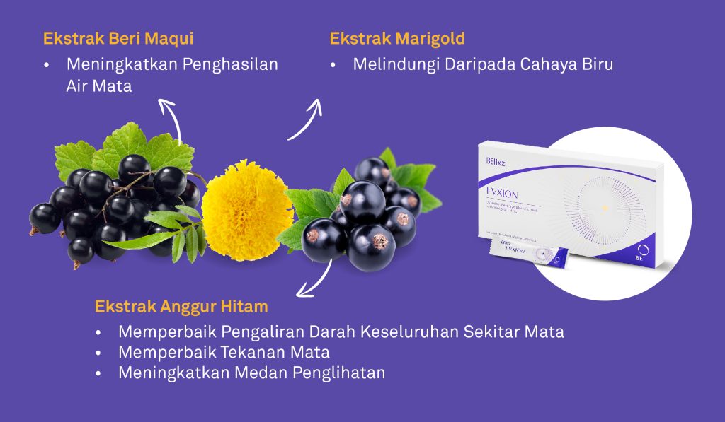 Tidak kira berapa usia anda, mata tetap hadapi cabaran setiap hari, dari ketegangan skrin masa kecil, tekanan kerja bila dewasa, sampai masalah penglihatan bila meningkat usia. BElixz I-VXION dengan ekstrak semula jadi membantu menyubur, melindungi dan menguatkan mata supaya anda kekal jelas dan selesa melihat dunia di setiap peringkat hidup.