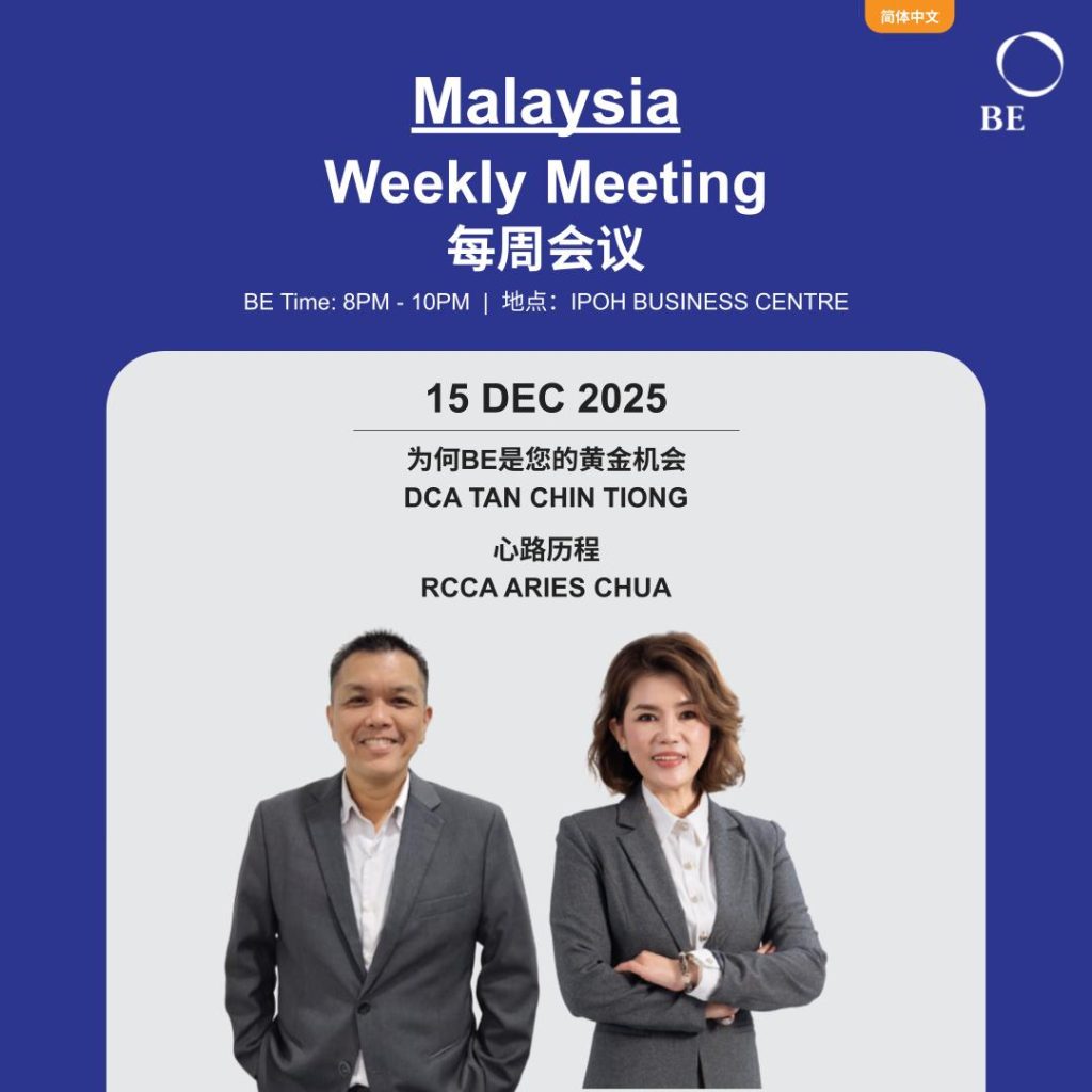 NOVEMBER WEEKLY MEETING 2025 MALAYSIA HYBRID ZOOM LINK (TUES, WED) https://zoom.us/j/91774573678?pwd=cTBkNVJUbDE3eFlneDhrOTBxUjAzUT09 Passcode: BEthebest MALAYSIA SINGAPORE BRUNEI INDONESIA HONG KONG IPOH BUSINESS CENTRE JOHOR BAHRU BUSINESS CENTRE KOTA KINABALU BUSINESS CENTRE MALAYSIA CCA JASWAN CHIA Jaswan是一位拥有25年经验的美容业老板娘。她很热爱美容事业,美容教育是她一生的理想,所以从没想过要接触直销事业,因为BE 文化和积极向上的环境让她愿意放下身段,保持一切归零,虚心受教的心态开始学习BE的系统敎育,一步一脚印学做“会、教、传”。在短短两年内,横扫BE的9大利益,从一位美容师成功转型成为BE直销行业的领袖。 RCCA LEE MOK SIANG 他拥有马来西亚科技大学 (UTM) 数学与教育学士学位、OUM 硕士学位以及澳大利亚科廷大学应用数学哲学博士学位 (PhD)。他还获得了新加坡国立大学(NUS)研究研讨会的“青年研究员奖”。 因为他给妻子买的两条AULORA裤,妻子的脚痛就痊愈了。因此,他利用BE提供的机会,与妻子的关系网扩大了200%发展 BE 事业。他和妻子还连续两次荣获Star Award Nite“银河奖”。 2023年底,他和妻子加冕为第55位RCCA。紧接着3个月后,他们的组织又诞生了3个RCCA。 RCCA MUNIRAH Beliau merupakan […]