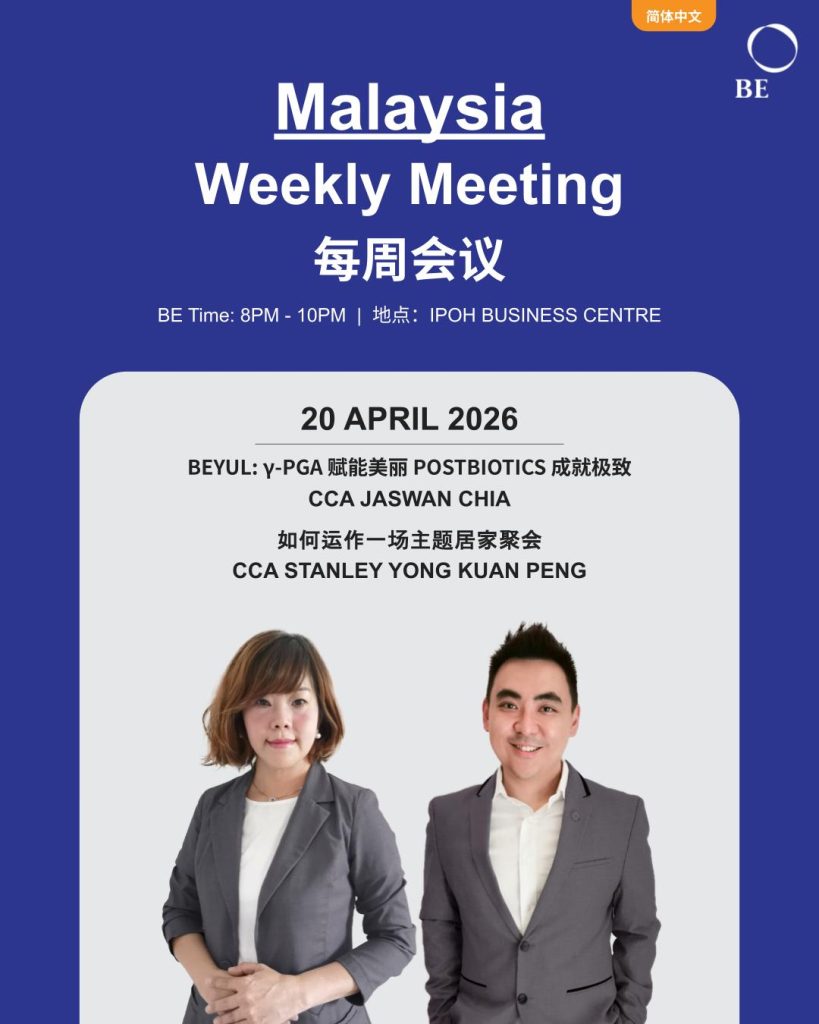 Stanley Yong是一位成功的企業家,在馬來西亞柔佛經營補習中心和幼稚園。本身熱愛籃球的他常因激烈運動而受傷,後來上綫介紹他穿Aulora Pants,之後也改善了他的問題。起初,他很討厭直銷,後來他從褲子中受益並看好BE的市場計劃,因此開始分享給身邊的人。他的努力成功合格於汽車基金和房屋基金,更於2020年第一季度成爲十大ECA。之後他決定把生意轉讓出去,全職在BE,因爲只有在BE才能讓他獲得時間和財務自由。他也在MCO 3.0合格成爲SRCA,更影響老婆也一起從事BE這個偉大事業!