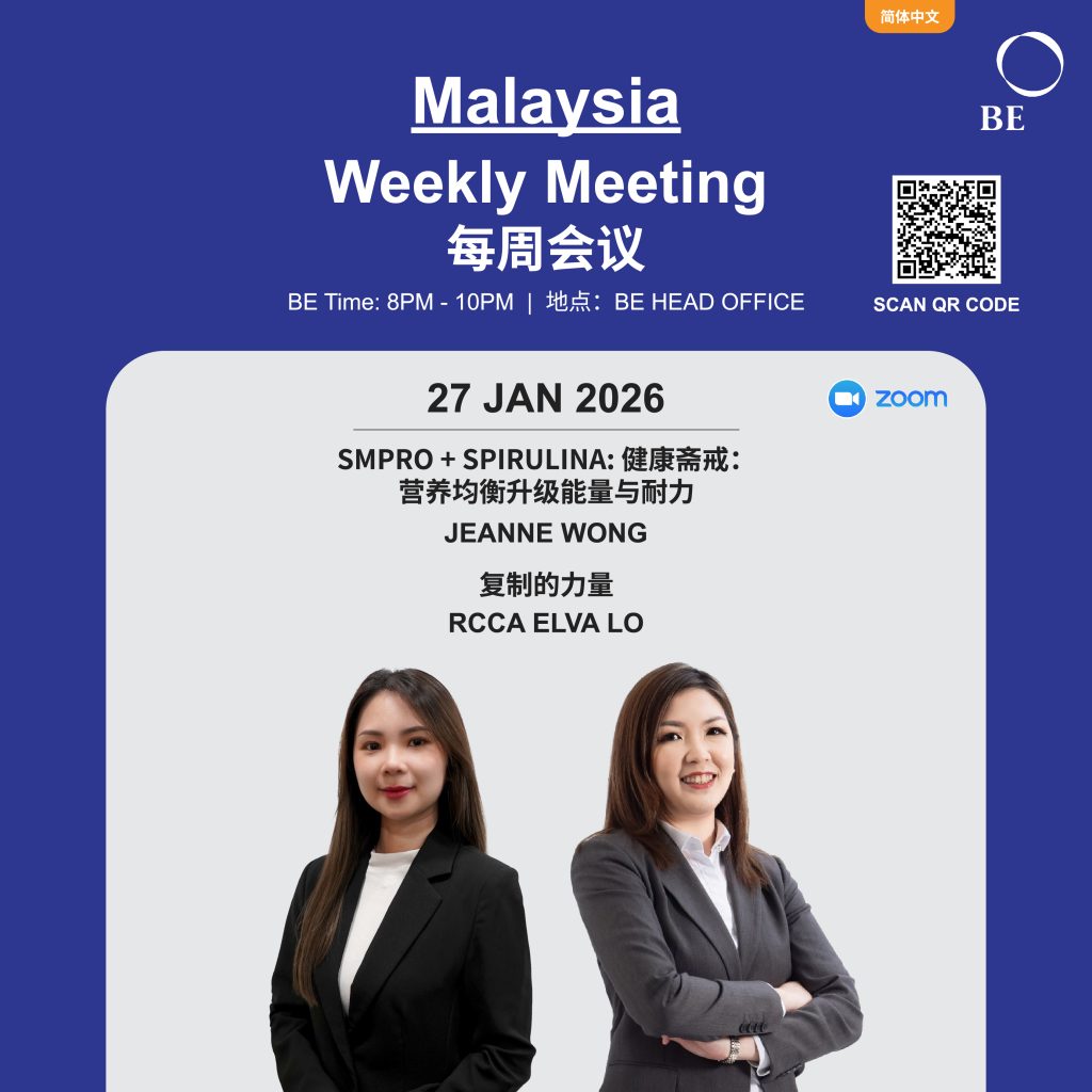 Berpegang pada ajaran BE prinsip 3H (honest, humble dan hardworking) beliau kekal positif bersemangat membantu lebih ramai mereka yang mencari peluang sihat dan berjaya di dalam perniagaan BE