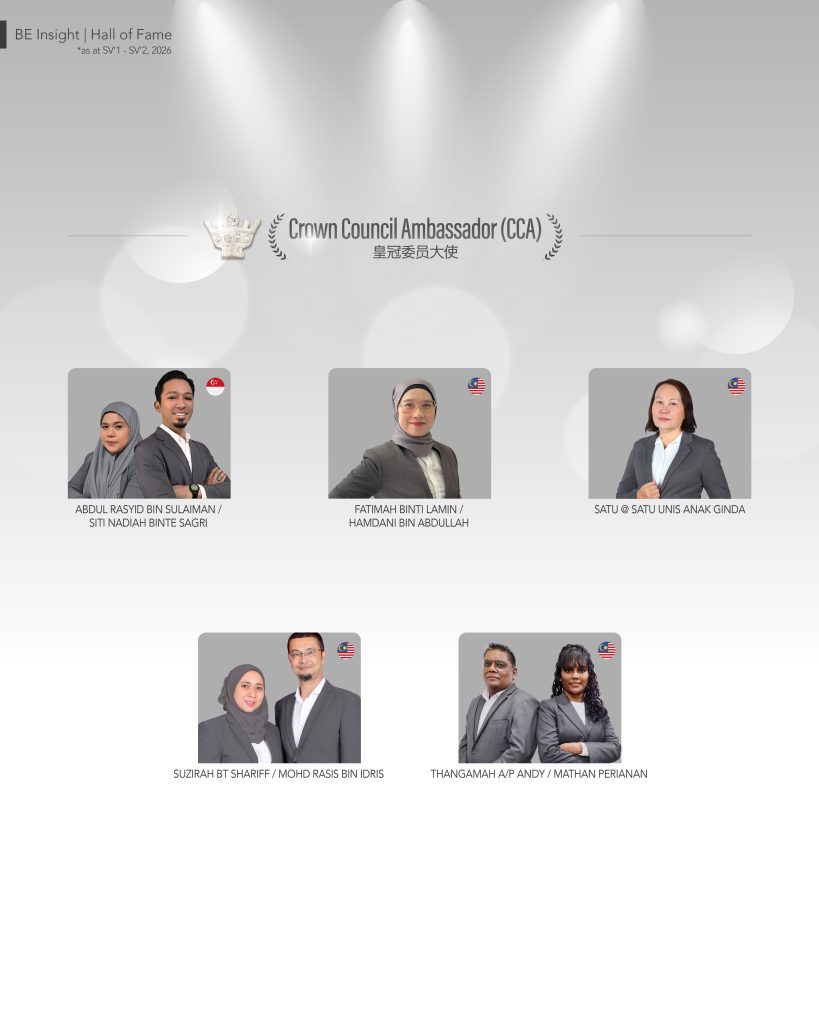 恭喜所有在 SV’1 – SV’2, 2026 晋升为皇冠委员大使(CCA)以及钻石委员大使(DCA)的领袖们!看到您们达到了非凡的成就让我们衷心感到非常高兴和自豪。您们不仅仅达到了目标,而且以出色的成绩超越了它们!